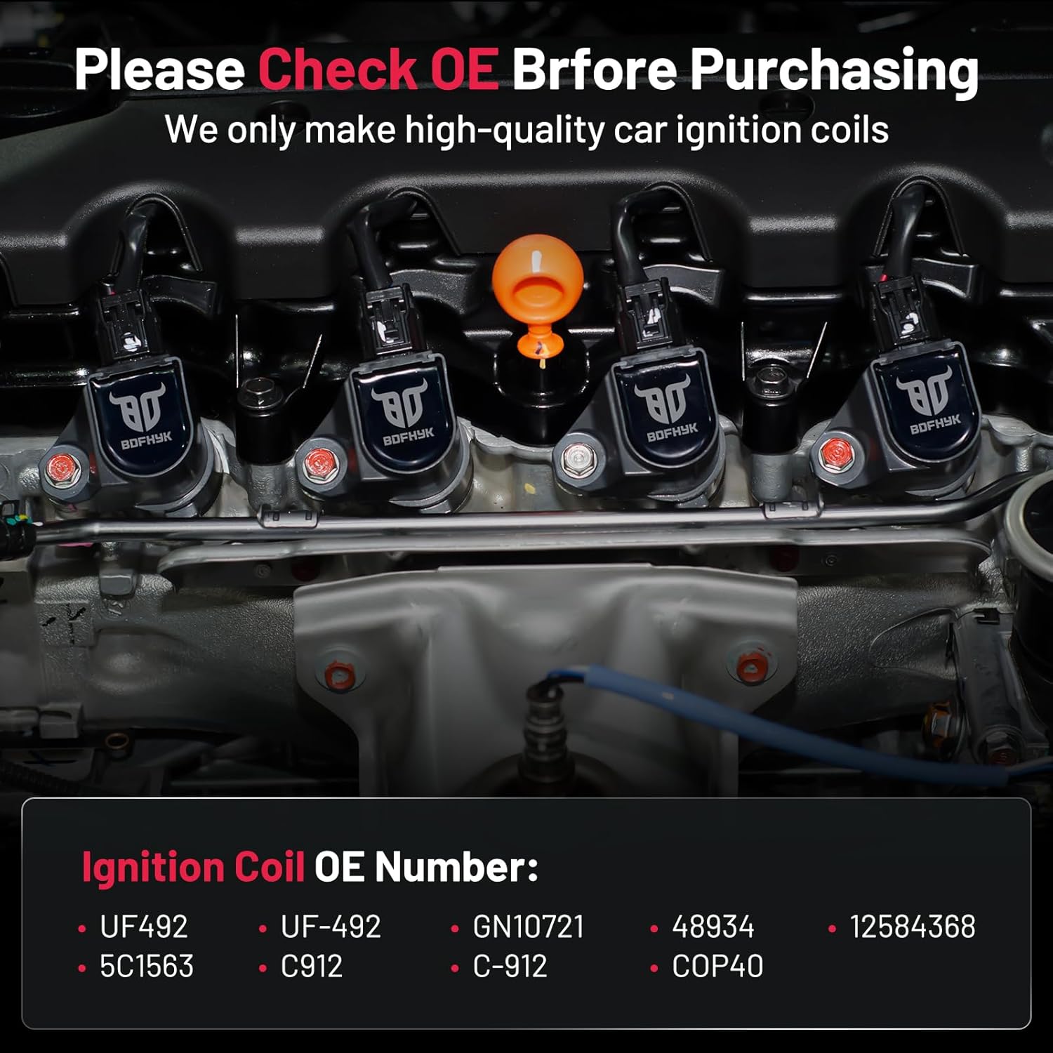 【Buy with Confidence】When your car has traveled more than 80,000km and is experiencing problems such as hard starting, excessive cranking time, lack of power, and increased fuel consumption, you may need to replace it with a new set of coil packs. Replacing our ignition coils can make your car as if it were new! You may choose it with confidence.