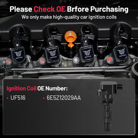 【OE Standard Performance】Exquisite craftsmanship design, 100% brand new high quality ignition coil pack, OE grade durability, bring you ultimate comfortable driving experience.OE No. UF516 6E5Z12029AA.