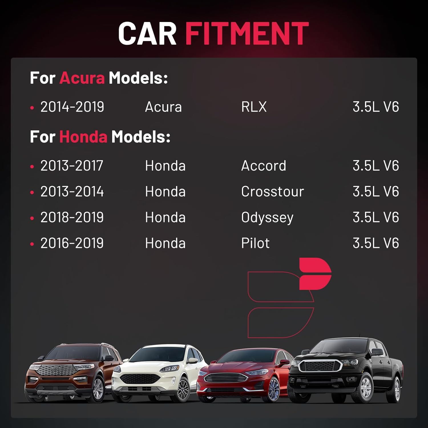 【Basic Info:】Ignition Coil UF713 & Spark Plugs 97390 Compatible with Acura 2014-2019 RLX; Compatible with Honda 2013-2017 Accord,2013-2014 Crosstour,2018-2019 Odyssey,2016-2019 Pilot. Please check detail fitting info from pics or detail page. Please choose suitable coil pack and plugs with confidence.
