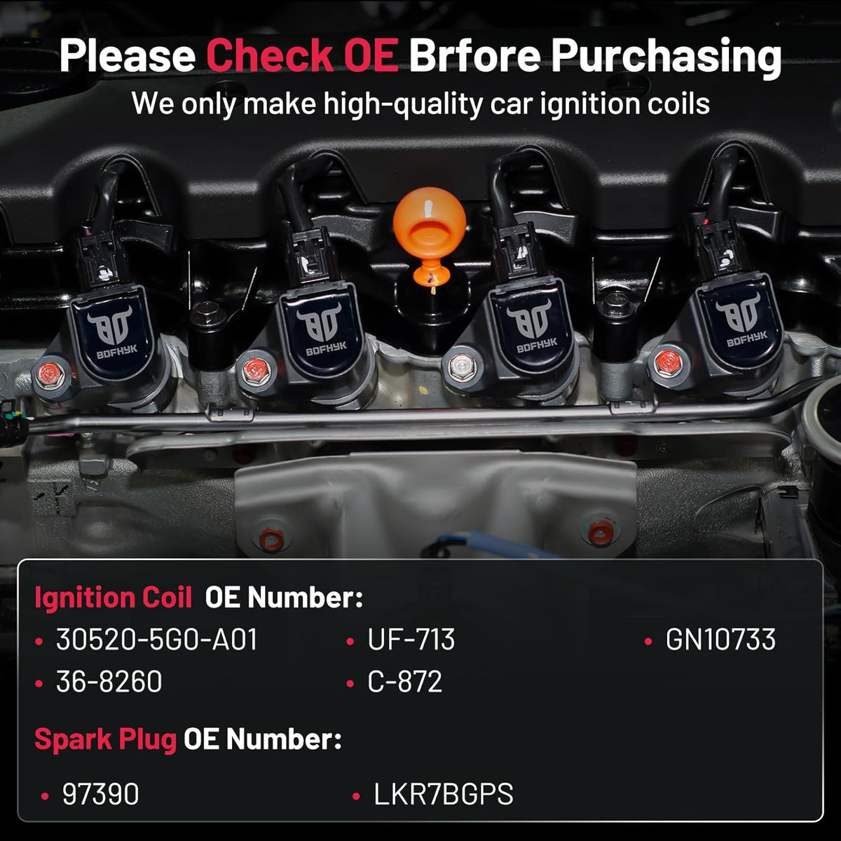 【About BDFHYK】A professional auto parts manufacturer with mature industry lines. We have our factory and experienced developer. It's been more than 10 years that we have served different customers from different areas. We do our best to hear from customers and update our coil packs and spark plugs. If you have more problems, please be free to contact us. Choose BDFHYK,choose good service.