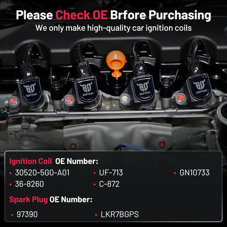 【Yes, you need a new coil and spark plug!】If your car has been used for a long time(over 80000km) and has problems like car shaking, start-up failure, speeding up slowly, and increasing fuel consumption, you may need to change a new set of spark plugs and coil packs. BDFHYK ignition coil packs and spark plugs can offer you a professional user experience and make your car like new. You may choose it with confidence.