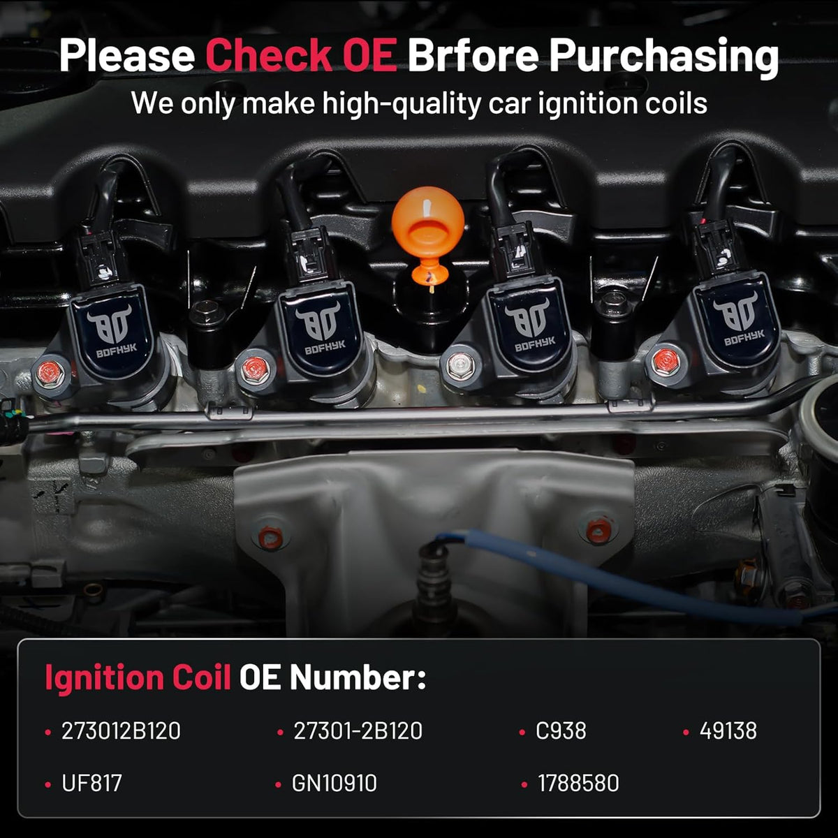 【Buy with Confidence】When your car has traveled more than 80,000km and is experiencing problems such as hard starting, excessive cranking time, lack of power, and increased fuel consumption, you may need to replace it with a new set of coil packs. Replacing our ignition coils can make your car as if it were new! You may choose it with confidence.