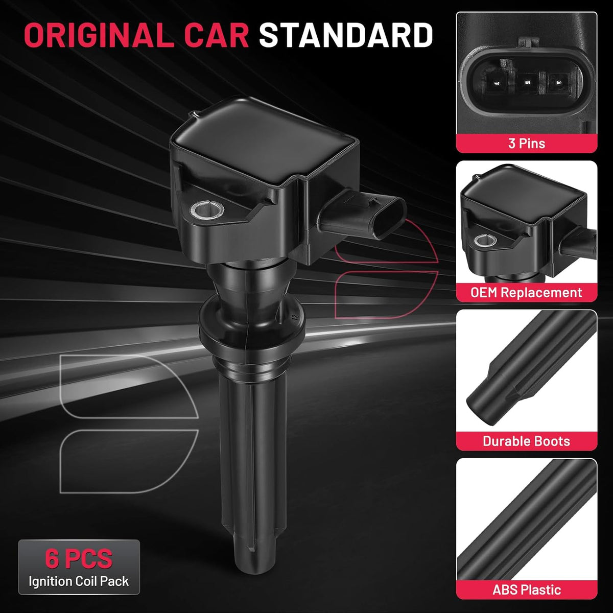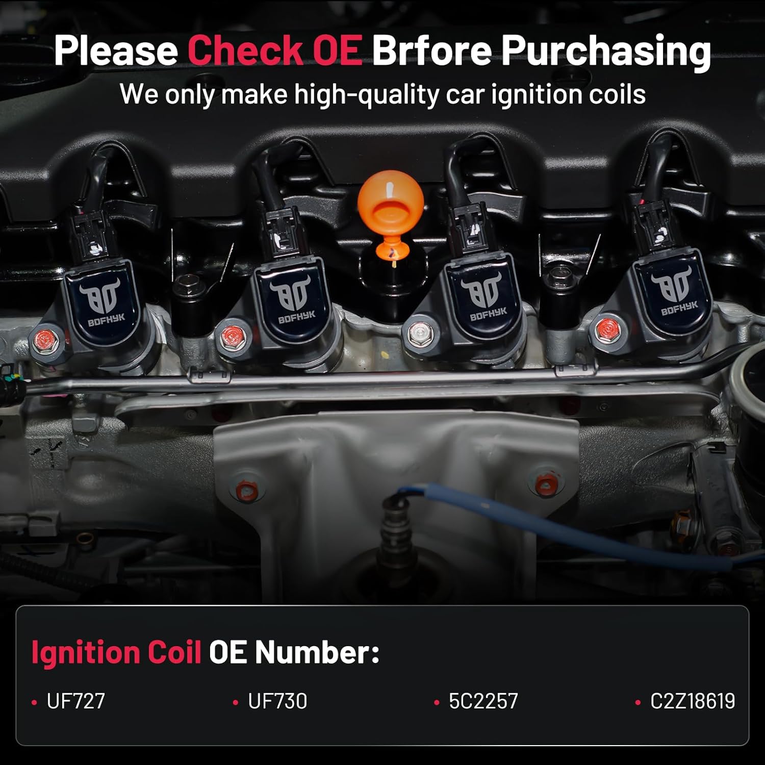 【OE Standard Performance】Exquisite craftsmanship design, 100% brand new high quality ignition coil pack, OE grade durability, bring you ultimate comfortable driving experience.OE No.UF727 UF730 5C2257 C2Z18619.