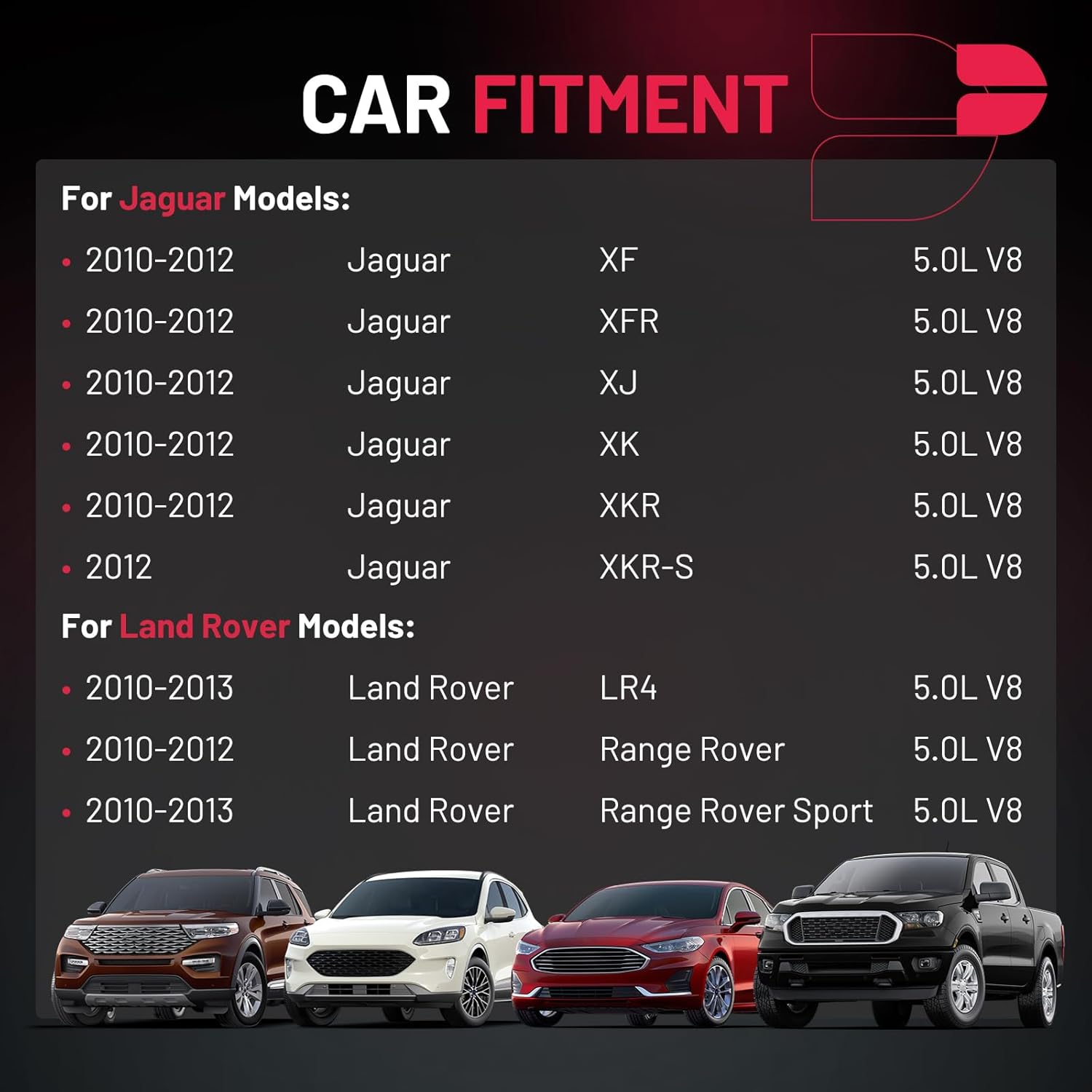 【Compatible with】Please confirm compatibility based on your vehicle's year, brand, model, and the OE number of the replacement coils.Ignition coils Compatible with Jaguar 2010-2012 XF, 2010-2012 XFR, 2010-2012 XJ, 2010-2012 XK, 2010-2012 XKR, 2012 XKR-S; Compatible with Land Rover 2010-2013 LR4, 2010-2012 Range Rover, 2010-2013 Range Rover Sport.
