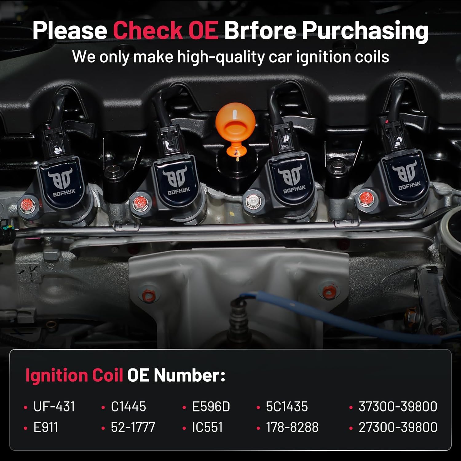 【Buy with Confidence】When your car has traveled more than 80,000km and is experiencing problems such as hard starting, excessive cranking time, lack of power, and increased fuel consumption, you may need to replace it with a new set of coil packs. Replacing our ignition coils can make your car as if it were new! You may choose it with confidence.