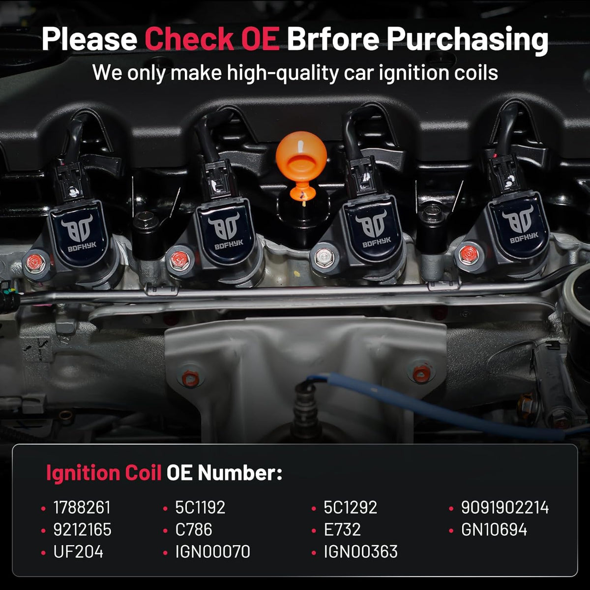 【OE Standard Performance】Exquisite craftsmanship design, 100% brand new high quality ignition coil pack, OE grade durability, bring you ultimate comfortable driving experience.OE No.1788261 5C1192 5C1292 9091902214 9212165 C786 E732 GN10694 IGN00070 IGN00363 UF204.