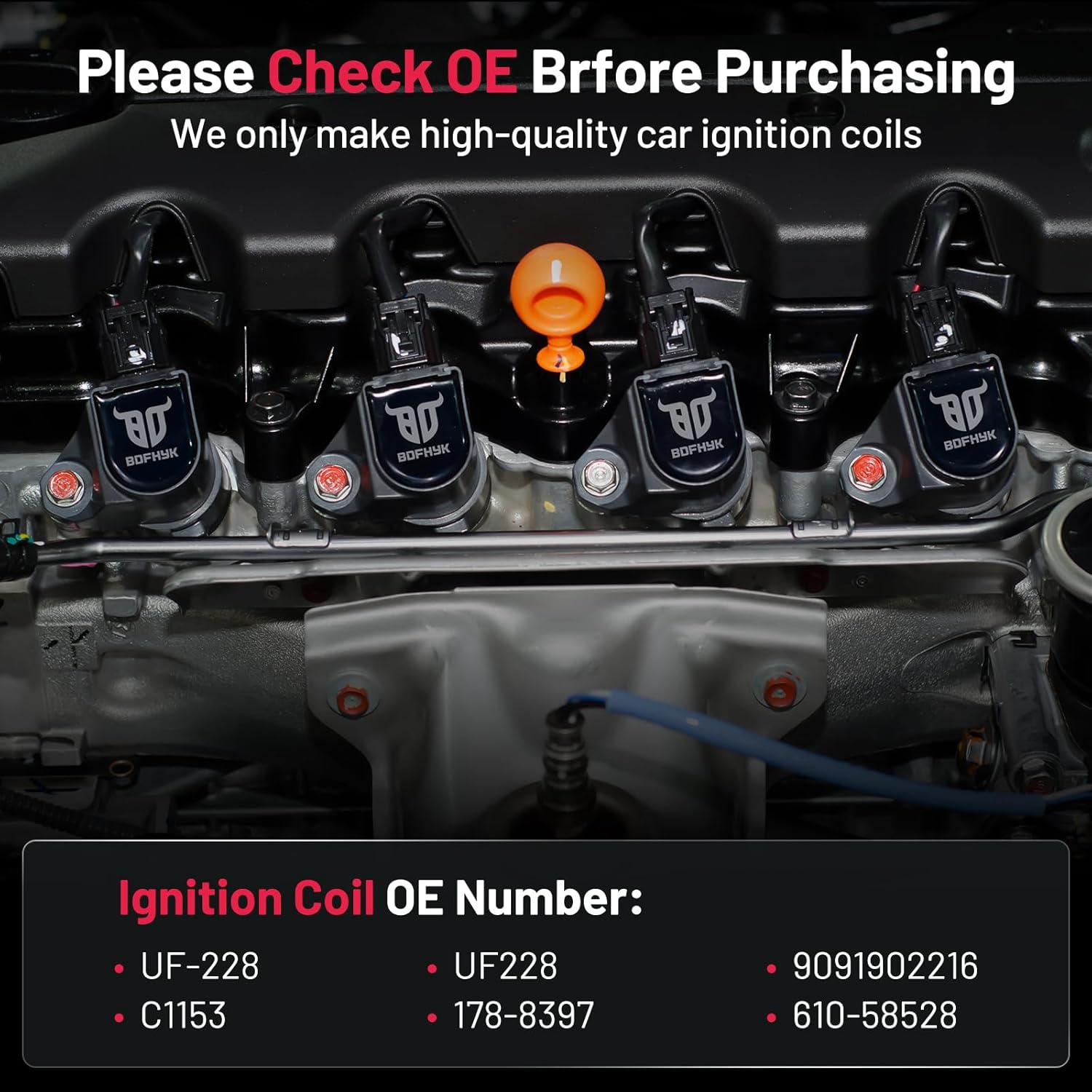 【Buy with Confidence】When your car has traveled more than 80,000km and is experiencing problems such as hard starting, excessive cranking time, lack of power, and increased fuel consumption, you may need to replace it with a new set of coil packs. Replacing our ignition coils can make your car as if it were new! You may choose it with confidence.