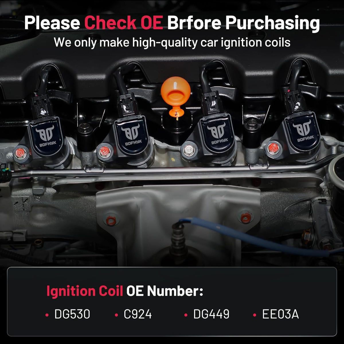 【OE Standard Performance】Exquisite craftsmanship design, 100% brand new high quality ignition coil pack, OE grade durability, bring you ultimate comfortable driving experience.OE No.DG530 C924 DG449 EE03A.