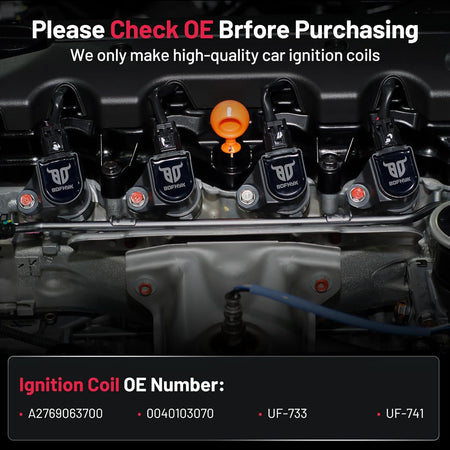 【OE Standard Performance】Exquisite craftsmanship design, 100% brand new high quality ignition coil pack, OE grade durability, bring you ultimate comfortable driving experience.OE No.A2769063700 0040103070 UF-733 UF-741.