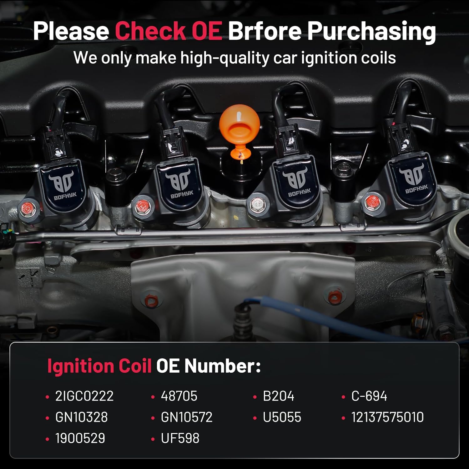 【Buy with Confidence】When your car has traveled more than 80,000km and is experiencing problems such as hard starting, excessive cranking time, lack of power, and increased fuel consumption, you may need to replace it with a new set of coil packs. Replacing our ignition coils can make your car as if it were new! You may choose it with confidence.