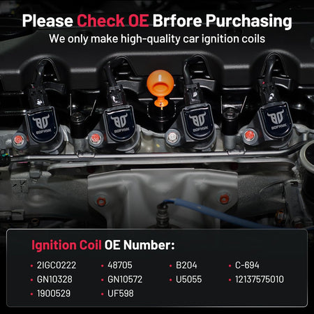 【OE Standard Performance】Exquisite craftsmanship design, 100% brand new high quality ignition coil pack, OE grade durability, bring you ultimate comfortable driving experience.OE No.2IGC0222 48705 B204 C-694 GN10328 GN10572 U5055 12137575010 1900529 UF598.