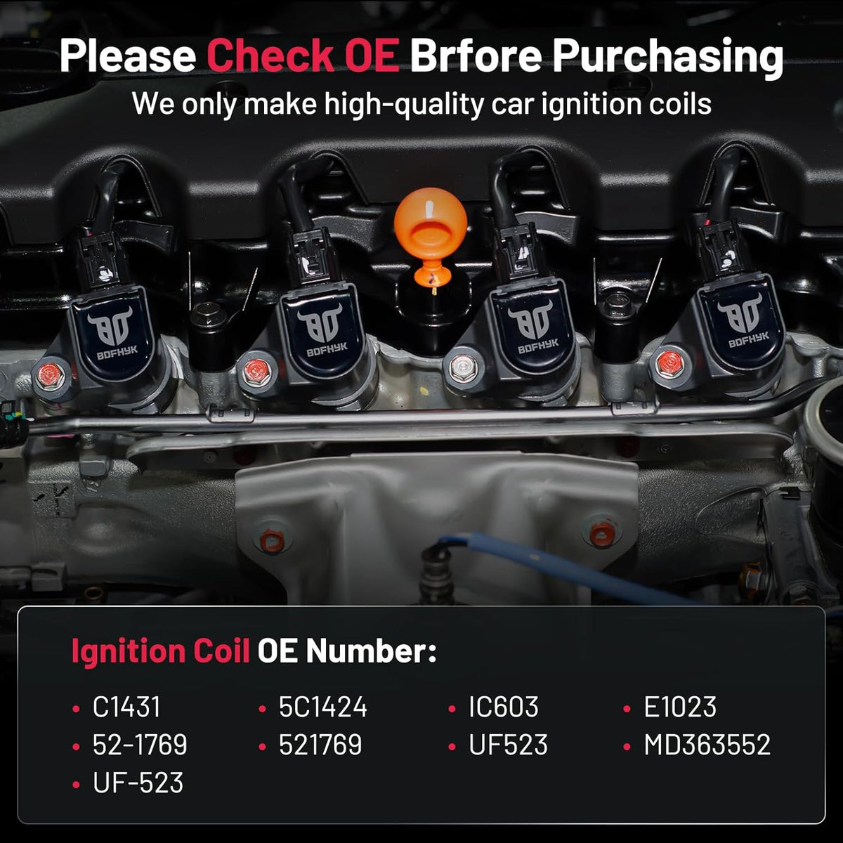 【OE Standard Performance】Exquisite craftsmanship design, 100% brand new high quality ignition coil pack, OE grade durability, bring you ultimate comfortable driving experience.OE No.MD363552 C1431 5C1424 IC603 E1023 52-1769 521769 UF-523 UF523.
