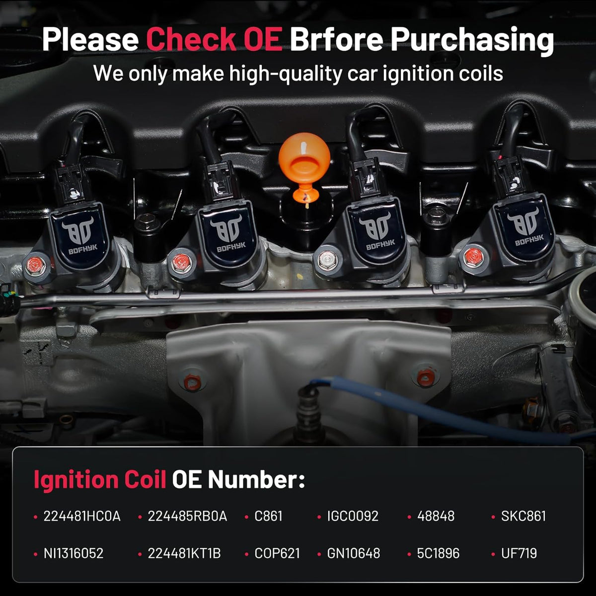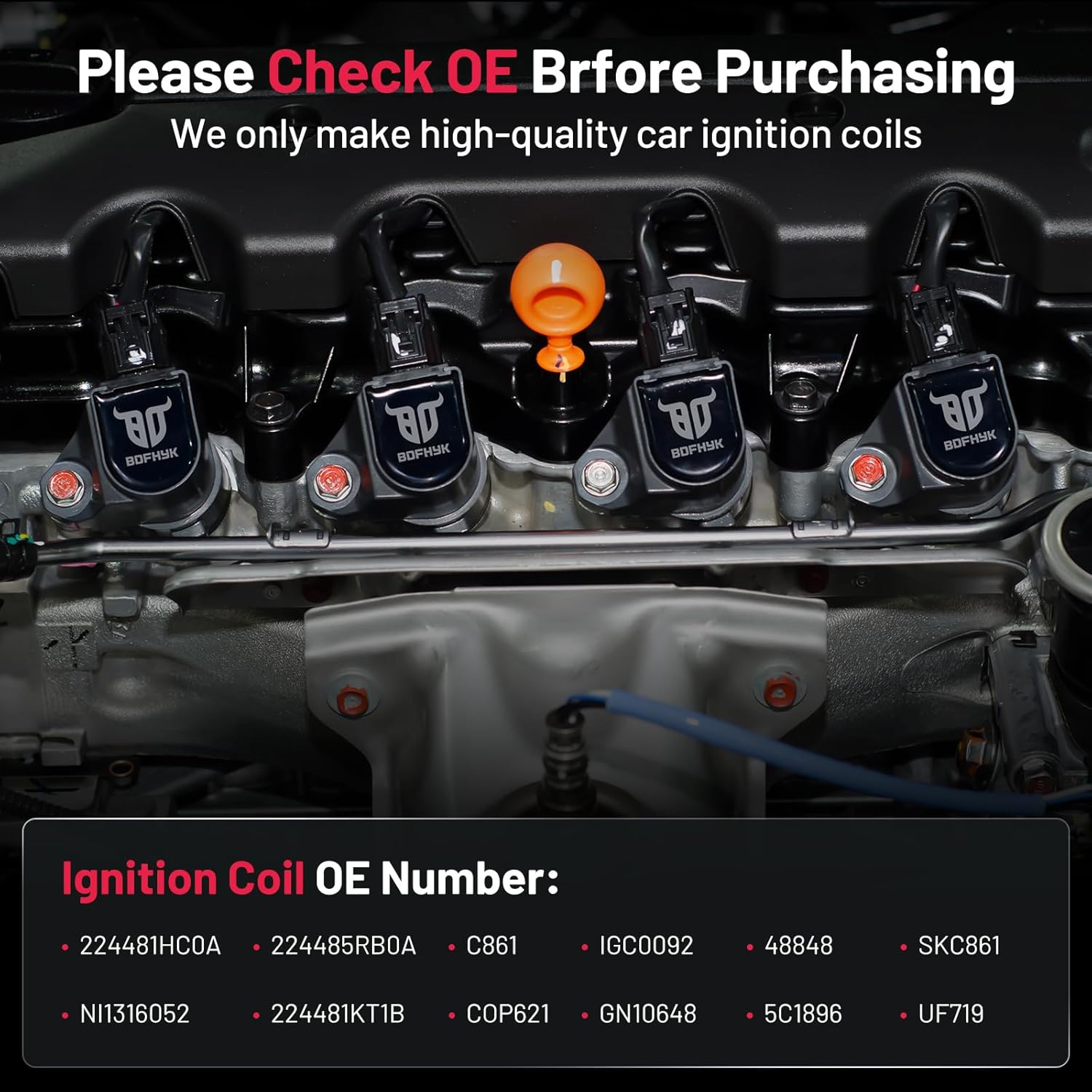 【OE Standard Performance】Exquisite craftsmanship design, 100% brand new high quality ignition coil pack, OE grade durability, bring you ultimate comfortable driving experience.OE No.224481HC0A 224485RB0A 224481KT1B IGC0092 48848 SKC861 NI1316052 C861 COP621 GN10648 5C1896 UF719.