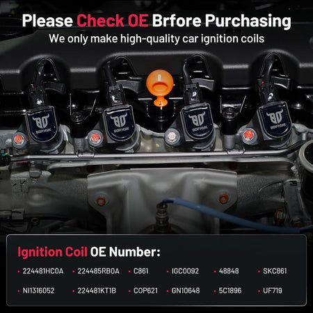 【Buy with Confidence】When your car has traveled more than 80,000km and is experiencing problems such as hard starting, excessive cranking time, lack of power, and increased fuel consumption, you may need to replace it with a new set of coil packs. Replacing our ignition coils can make your car as if it were new! You may choose it with confidence.