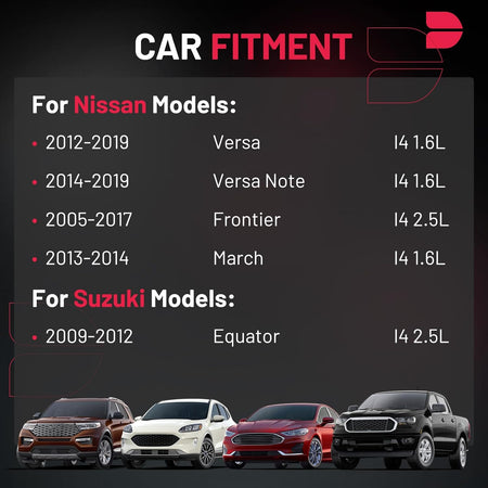 【Compatible with】Please confirm compatibility based on your vehicle's year, brand, model, and the OE number of the replacement coils.Ignition coils Compatible with Nissan 2012-2019 Versa l4 1.6L, 2014-2019 Versa Note l4 1.6L, 2005-2017 Frontier l4 2.5L, 2013-2014 March l4 1.6L; Compatible with Suzuki 2009-2012 Equator l4 2.5L.More information can be found in the pictures or on the details page.