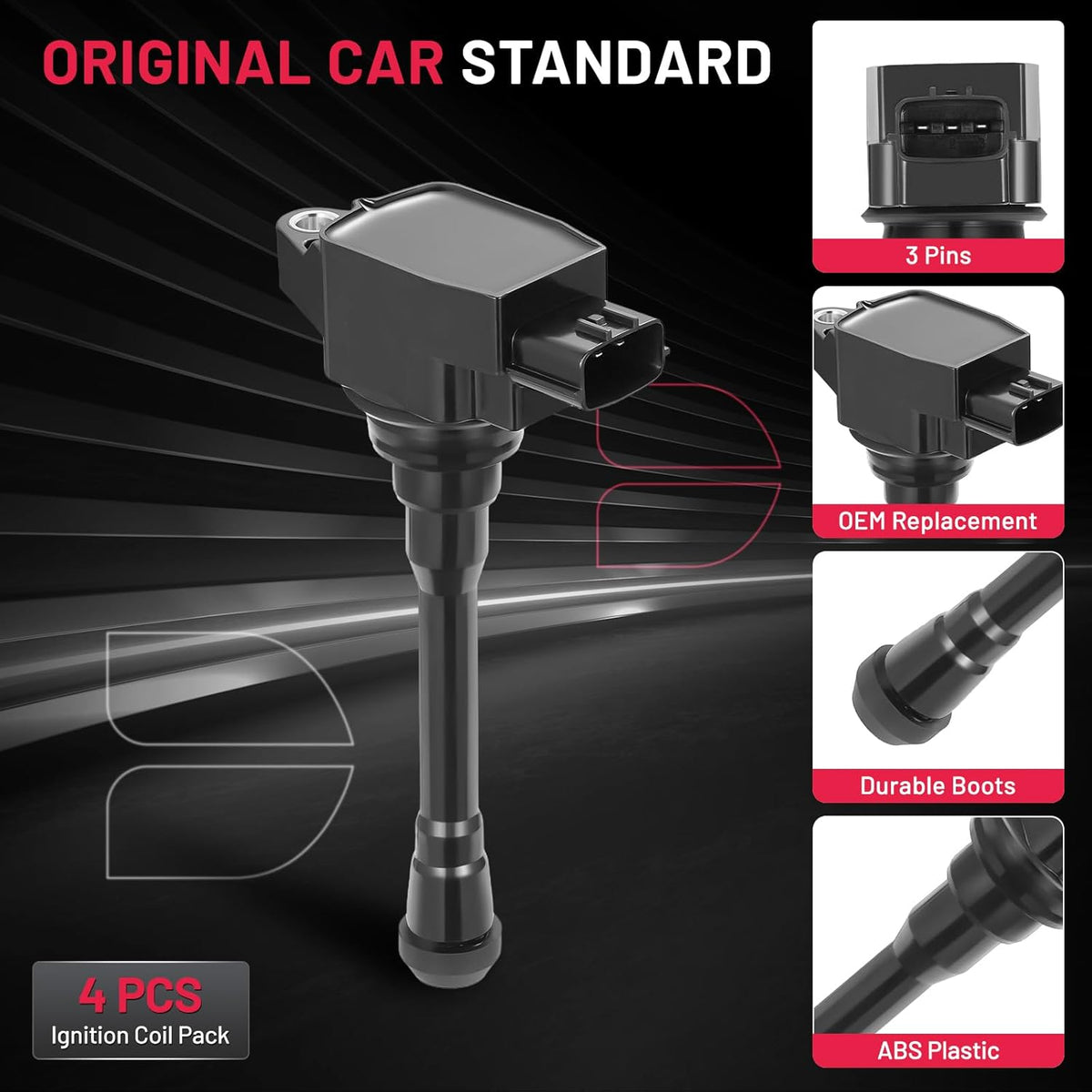【Compatible with】Please confirm compatibility based on your vehicle's year, brand, model, and the OE number of the replacement coils.Ignition coils Compatible with Nissan 2017-2018 Sentra 1.6L, 2013-2018 Sentra 1.8L, 2013-2019 NV200 2.0L.