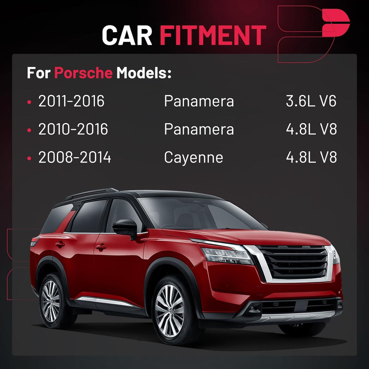 【Compatible with】Please confirm compatibility based on your vehicle's year, brand, model, and the OE number of the replacement coils.Ignition coils Compatible with Porsche 2011-2016 Panamera 3.6L V6,2010-2016 Panamera 4.8L V8,2008-2014 Cayenne 4.8L V8.