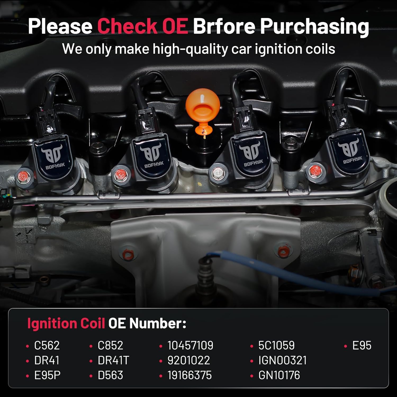 【OE Standard Performance】Exquisite craftsmanship design, 100% brand new high quality ignition coil pack, OE grade durability, bring you ultimate comfortable driving experience.OE No.10457109 19166375 5C1059 9201022 C562 C852 D563 DR41 DR41T E95 E95P GN10176 IGN00321.