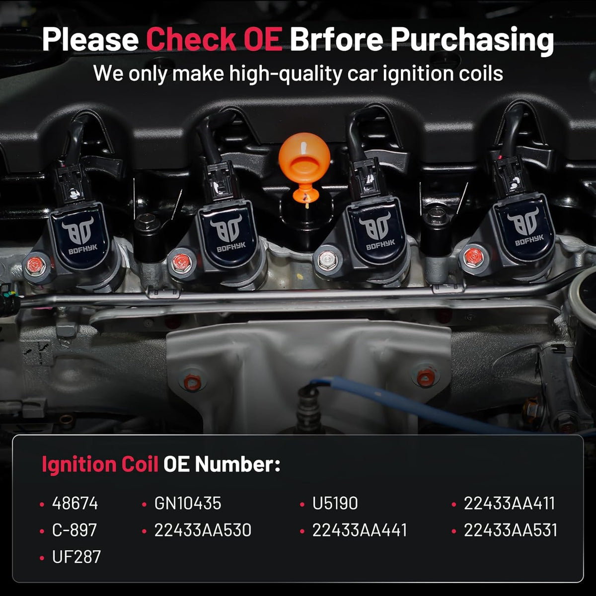 【Buy with Confidence】When your car has traveled more than 80,000km and is experiencing problems such as hard starting, excessive cranking time, lack of power, and increased fuel consumption, you may need to replace it with a new set of coil packs. Replacing our ignition coils can make your car as if it were new! You may choose it with confidence.