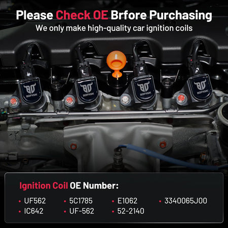 【OE Standard Performance】Exquisite craftsmanship design, 100% brand new high quality ignition coil pack, OE grade durability, bring you ultimate comfortable driving experience.OE No.UF562 5C1785 E1062 52-2140 IC642 UF-562 3340065J00.