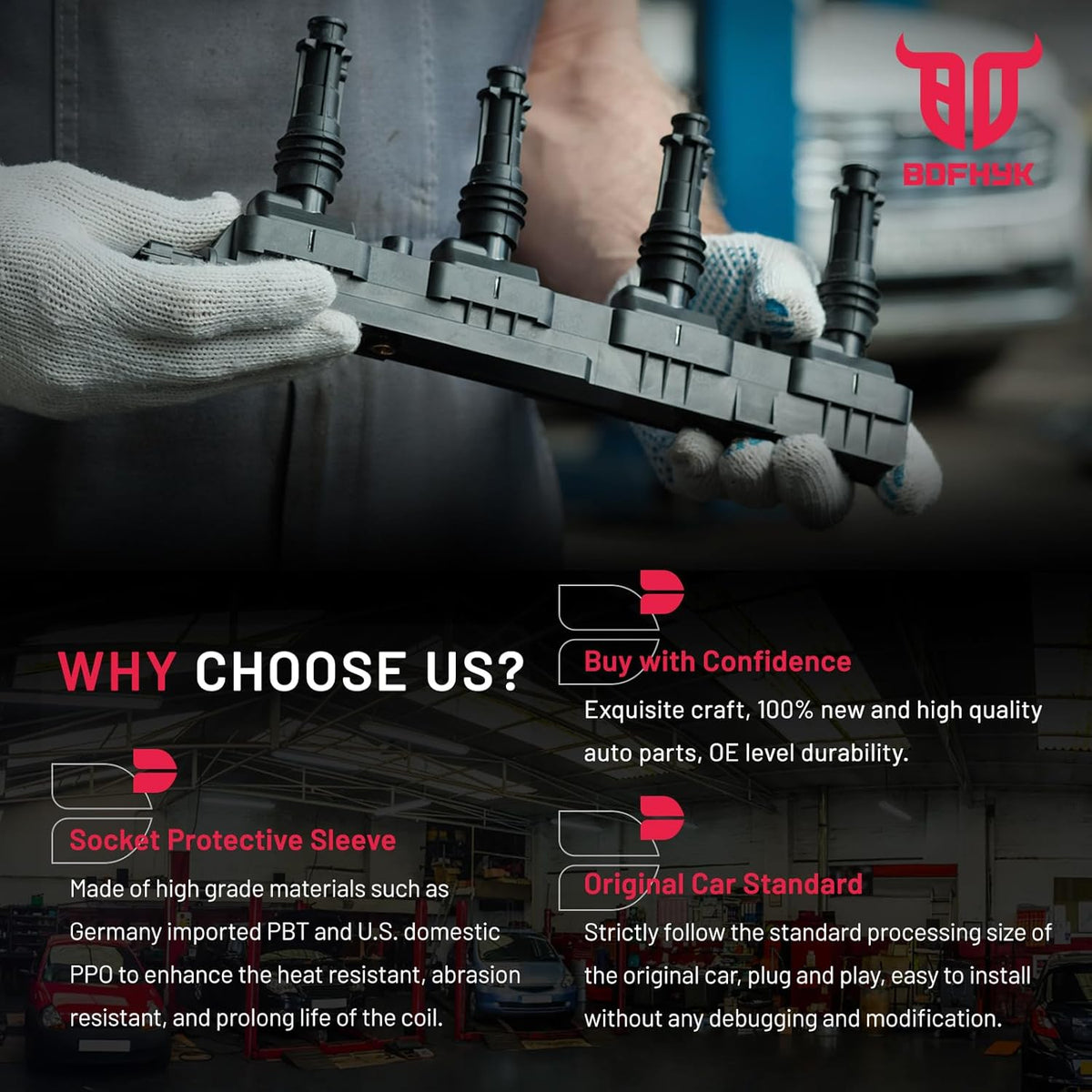 【About BDFHYK】We are a professional automotive component manufacturer with a mature industrial production line. If you encounter any issues with our ignition coil, please contact us immediately, and we will respond to you within 48 hours. We are committed to providing a 12-month quality guarantee service. Choose BDFHYK, choose high-quality coil packs.