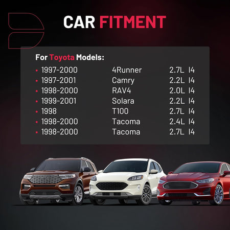 【Compatible with】Please confirm compatibility based on your vehicle's year, brand, model, and the OE number of the replacement coils.Ignition coils Compatible with Toyota 1997-2000 4Runner, 1997-2001 Camry, 1998-2000 RAV4, 1999-2001 Solara, 1998 T100, 1998-2000 Tacoma. More information can be found in the pictures or on the details page.