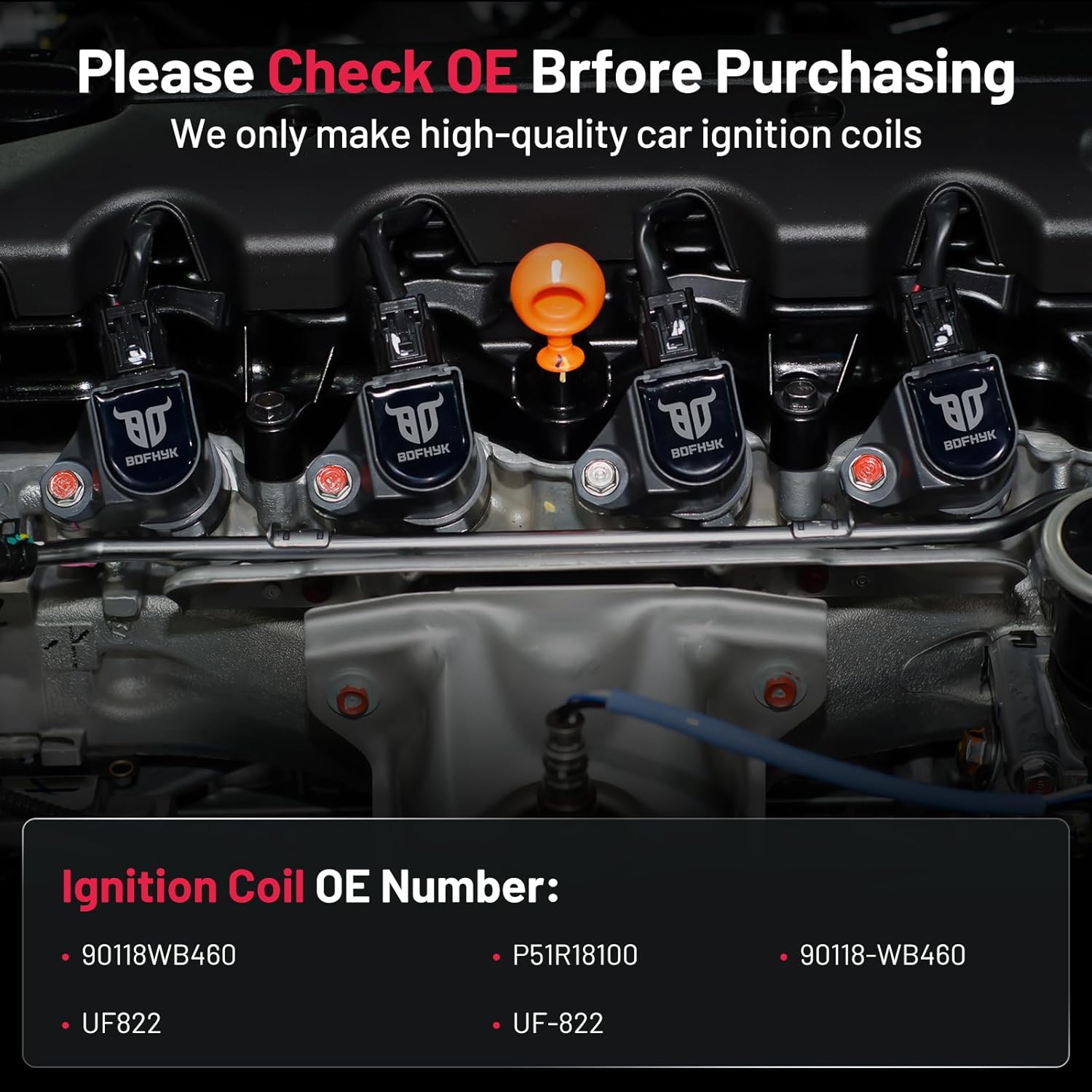 【OE Standard Performance】Exquisite craftsmanship design, 100% brand new high quality ignition coil pack, OE grade durability, bring you ultimate comfortable driving experience.OE No.90118WB460 P51R18100 90118-WB460 UF822 UF-822.