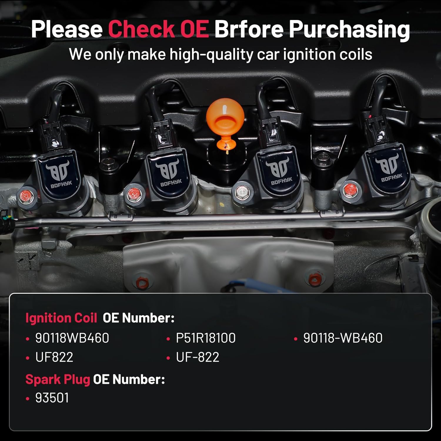 【Features of ignition coil:】High quality ignition coils are made of silicon steel material, Japan-imported rubber, and Germany-imported varnished wire, which makes our coils have a long using life and better quality. ‼Please check OE:90118WB460 P51R18100 90118-WB460 UF822 UF-822.