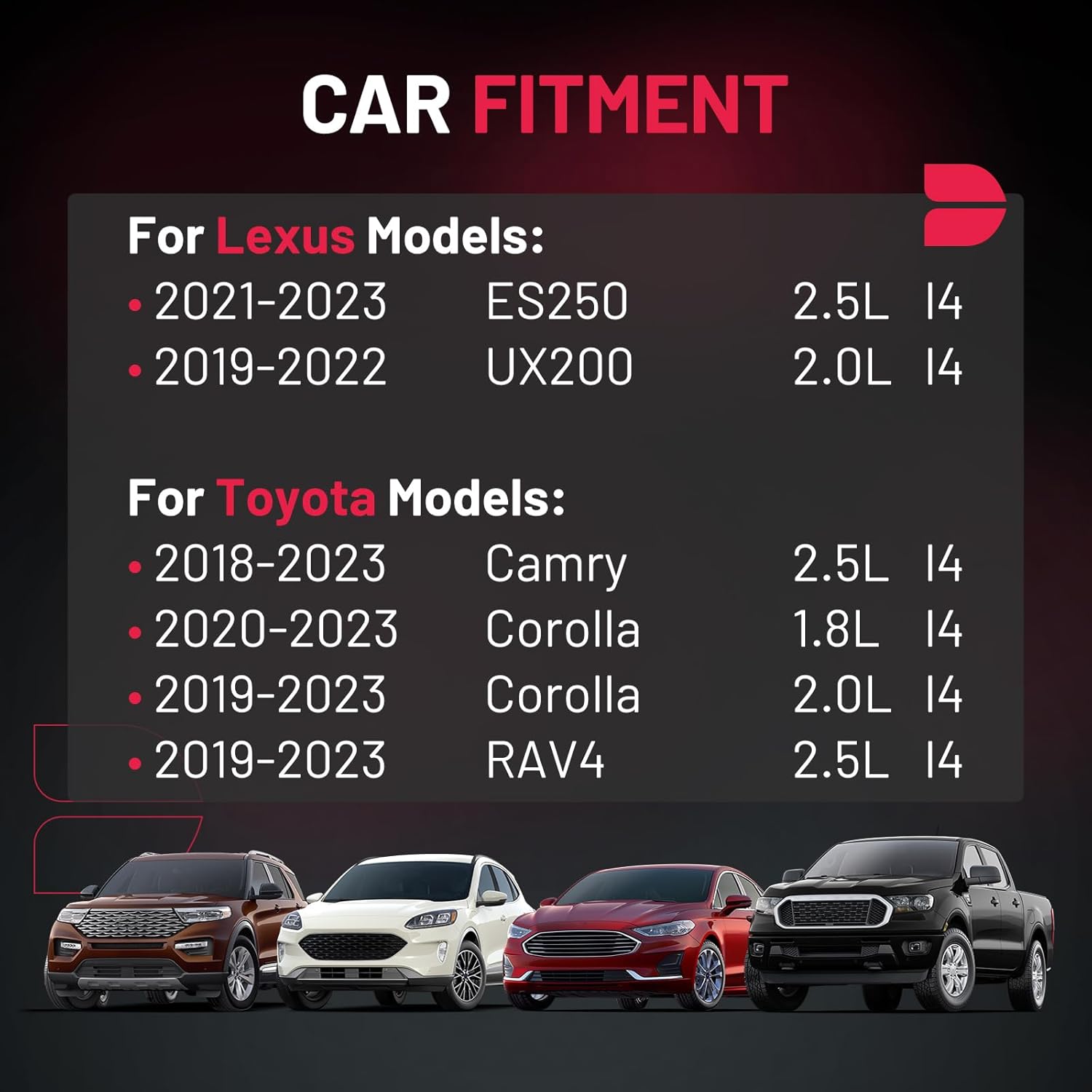 【Basic Info:】Ignition Coil UF848 & Spark Plugs 96210 Compatible with Lexus 2021-2023 ES250, 2019-2022 UX200; Compatible with Toyota 2018-2023 Camry, 2019-2023 Corolla, 2019-2023 RAV4. Please check detail fitting info from pics or detail page. Please choose suitable coil pack and plugs with confidence.