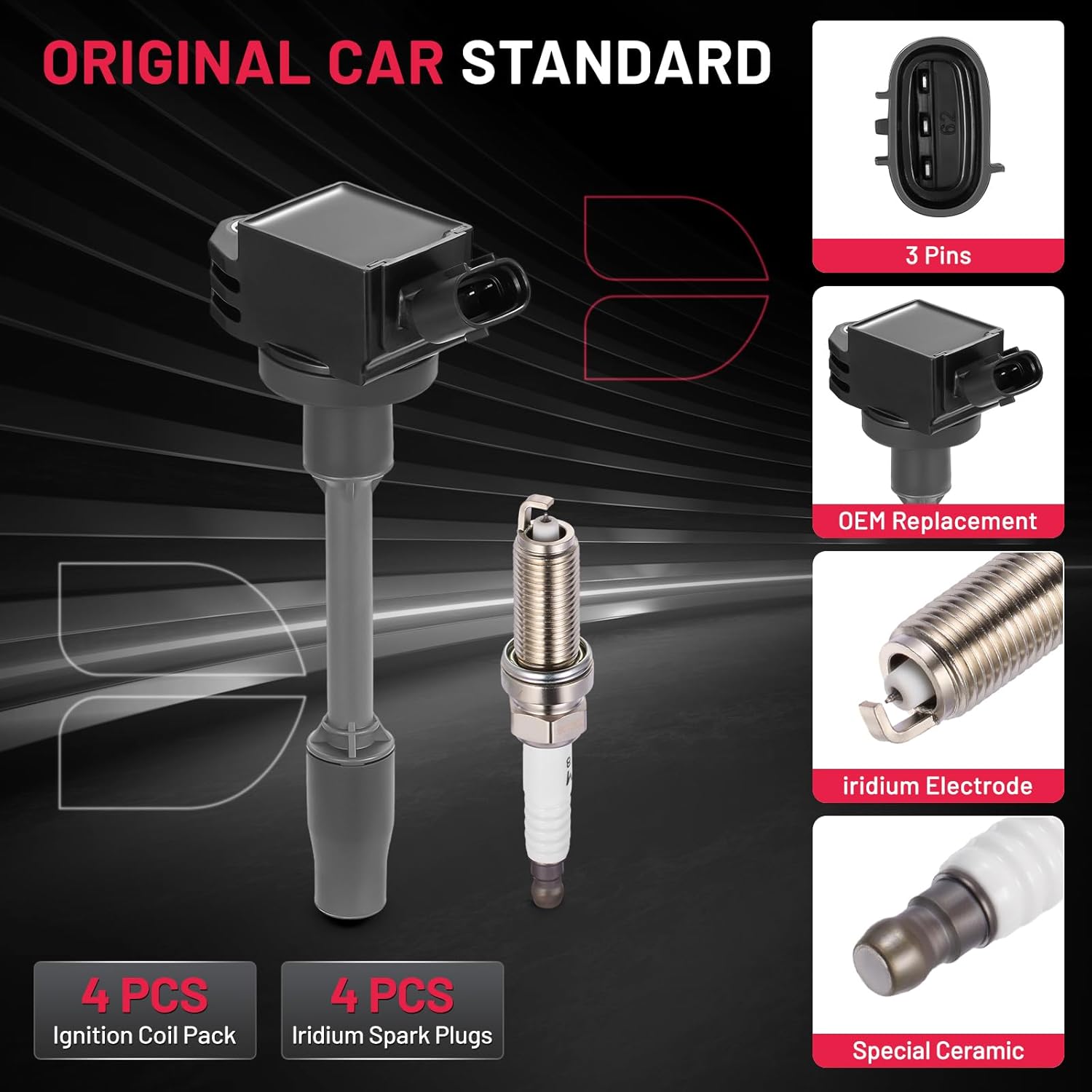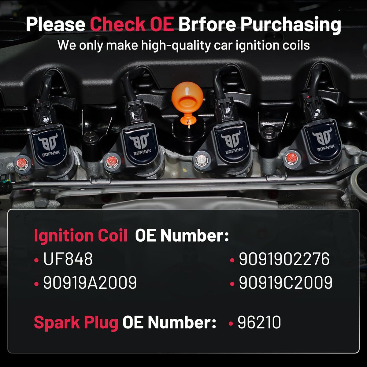 BDFHYK 4 Ignition Coil Pack UF848 and 4 Iridium Spark Plug 96210 Compatible with Lexus 21-23 ES250, 19-22 UX200,Compatible with Toyota 18-23 Camry, 19-23 Corolla, 19-23 RAV4 Coil for 9091902276
