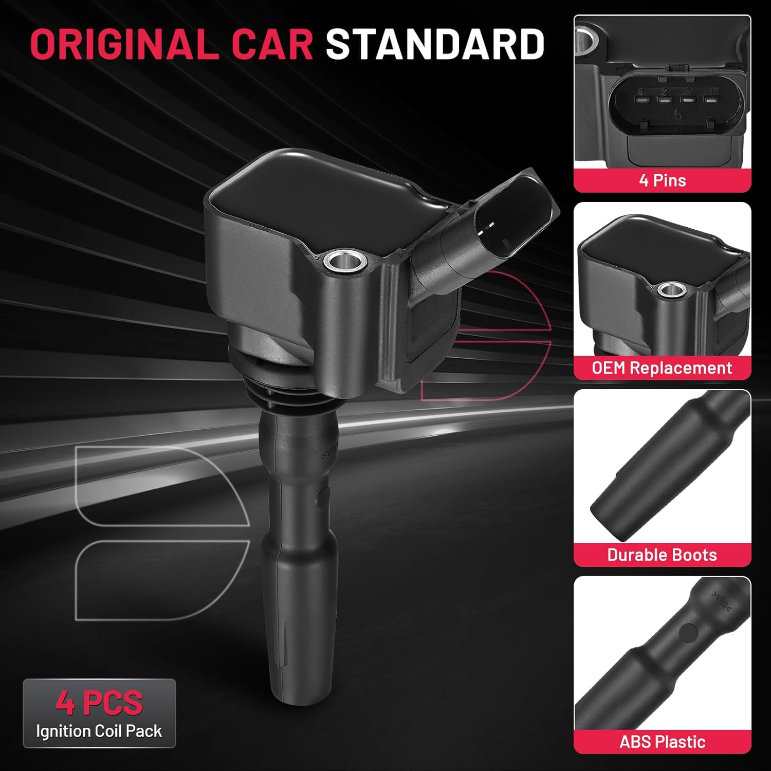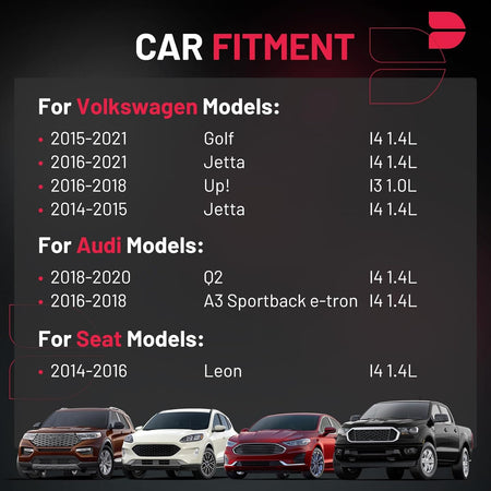 【Compatible with】Please confirm compatibility based on your vehicle's year, brand, model, and the OE number of the replacement coils.Ignition coils Compatible with Volkswagen 2015-2021 Golf l4 1.4L, 2016-2021 Jetta l4 1.4L, 2016-2018 Up! l3 1.0L; Compatible with Audi 2018-2020 Q2 l4 1.4L, 2016-2018 A3 Sportback e-tron l4 1.4L; Compatible with Seat 2014-2016 Leon l4 1.4L.More information can be found in the pictures or on the details page.