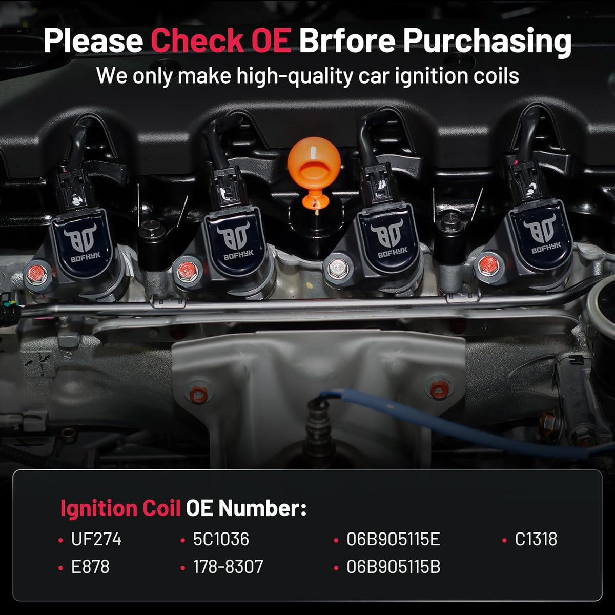 【About BDFHYK】We are a professional automotive component manufacturer with a mature industrial production line. If you encounter any issues with our ignition coil, please contact us immediately, and we will respond to you within 48 hours. We are committed to providing a 12-month quality guarantee service. Choose BDFHYK, choose high-quality coil packs.