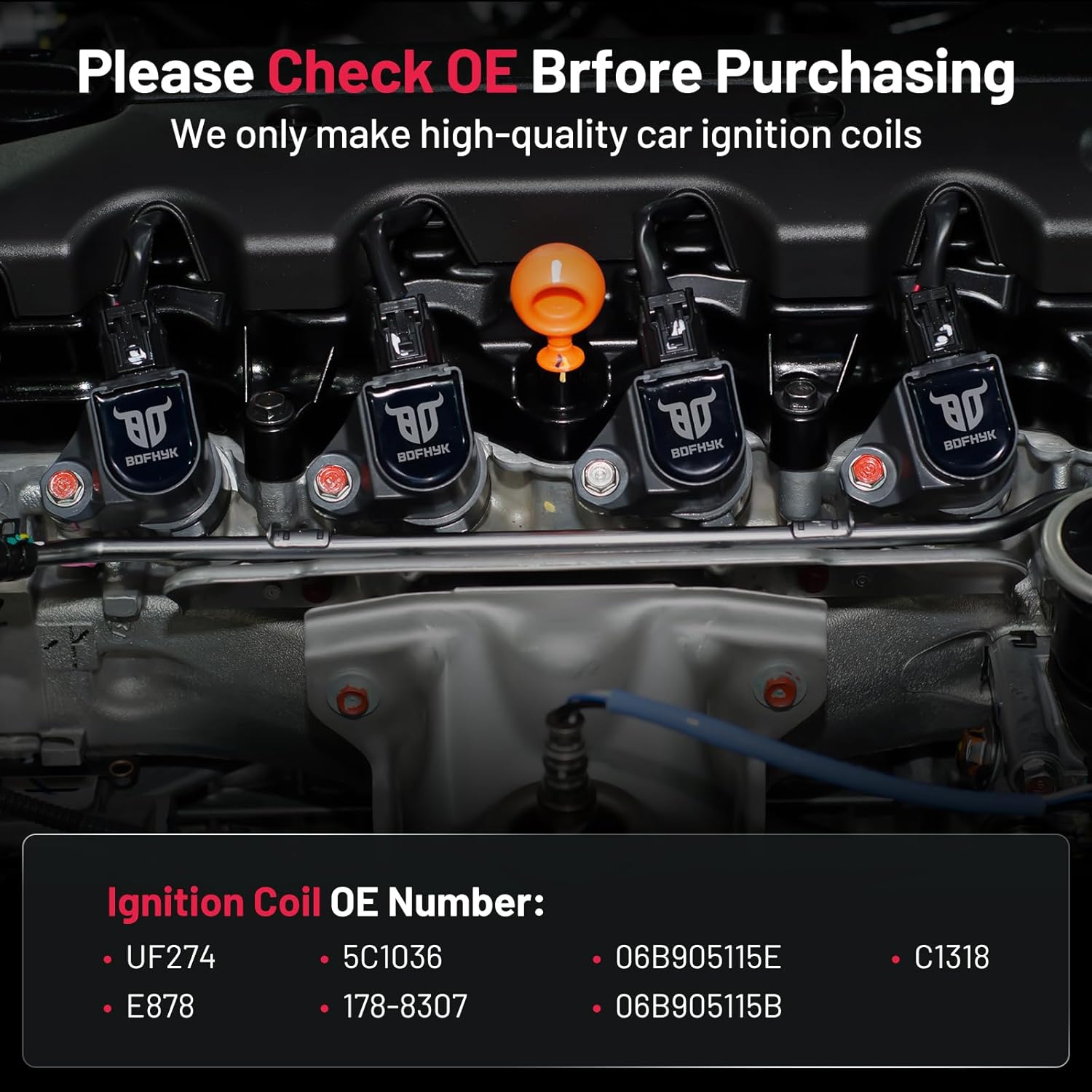 【OE Standard Performance】Exquisite craftsmanship design, 100% brand new high quality ignition coil pack, OE grade durability, bring you ultimate comfortable driving experience.OE No.06B905115B 06B905115E UF274 5C1036 C1318 178-8307 E878.