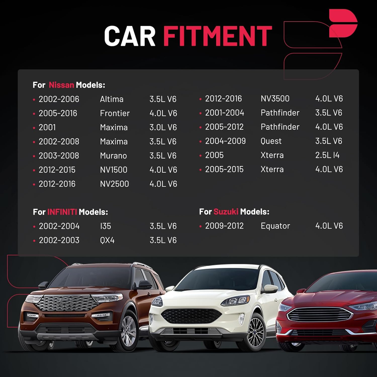 【Ignition Coil Compatible with】Compatible with Nissan Altima 2002-2006, Nissan Maxima 2001-2008, Nissan Xterra 2005-2015, Nissan Pathfinder 2001-2012, Nissan Frontier 2005-2016, Nissan Murano 2003-2008, Nissan Quest 2004-2009, Nissan NV1500 2012-2015, Nissan NV2500 2012-2016, Nissan NV3500 2012-2016; Compatible with INFINITI I35 2002-2004, INFINITI QX4 2002-2003; Compatible with Suzuki Equator 2009-2012.ect. Please confirm the compatibility according to the year/make/model of your vehicle and the OE number of the replaceable part.