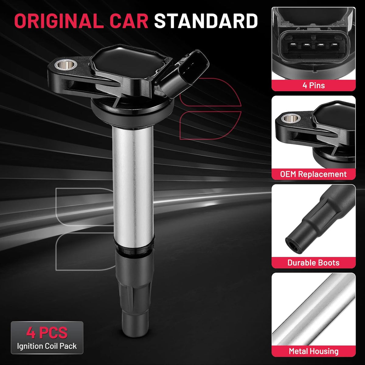 【Ignition Coil Compatible with】Compatible with Toyota Corolla 2009-2017 1.8L l4, Toyota Corolla 2011-2012 2.4L l4, 2010-2015 Toyota Prius, 2017-2018 Toyota Corolla iM, 2012-2017 Toyota Prius V, 2018-2021 Toyota C-HR, 2009-2014 Toyota Matrix; Compatible with Lexus CT200h 2011-2017; Compatible with Scion iM 2016, Scion xD 2008-2014; Compatible with Pontiac Vibe 2009-2010. Please confirm the compatibility according to the year/make/model of your vehicle and the OE number of the replaceable part.