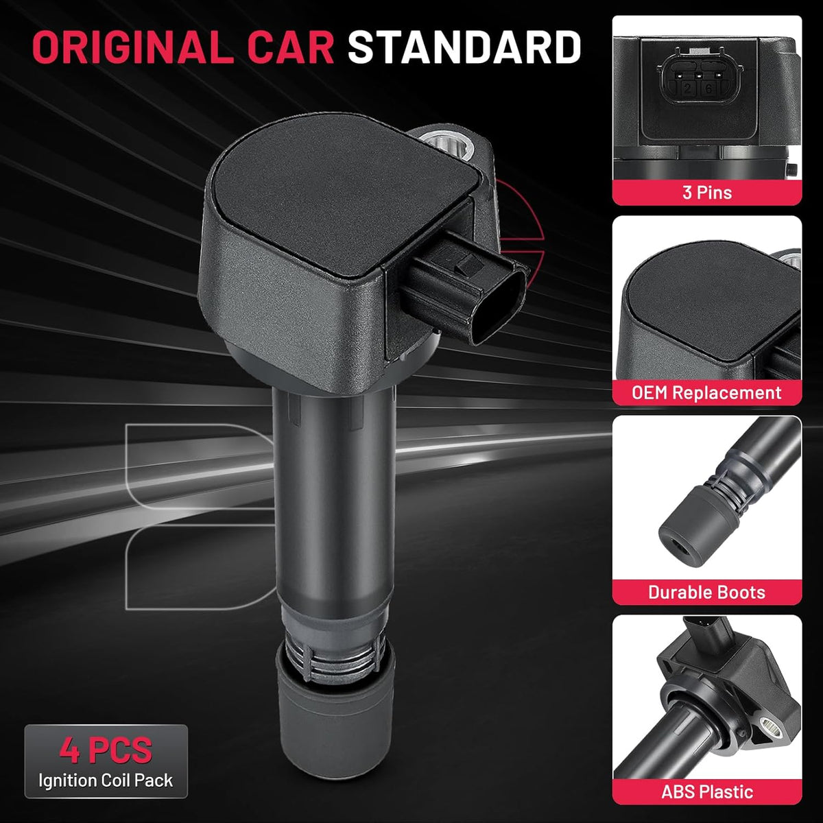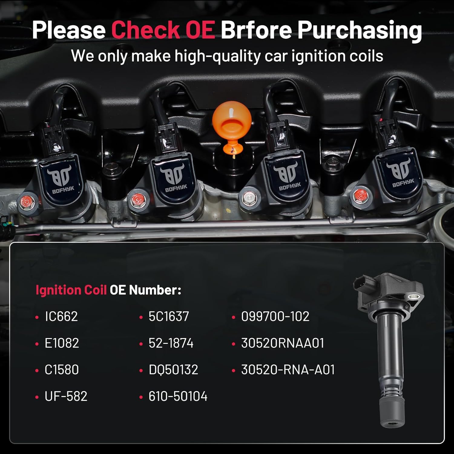 BDFHYK Ignition Coils Pack Compatible with 2006-2011 Honda Civic l4 1.8L Coil for UF582 C1580 099700-102 DQ50132 610-50104 5C1637 E1082 52-1874 IC662 30520-RNA-A01 30520RNAA01 Set of 4