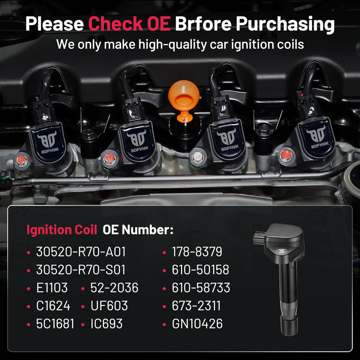 【Buy with Confidence】When your car has traveled more than 80,000km and is experiencing problems such as hard starting, excessive cranking time, lack of power, and increased fuel consumption, you may need to replace it with a new set of coil packs. Replacing our ignition coils can make your car as if it were new!You may choose it with confidence.