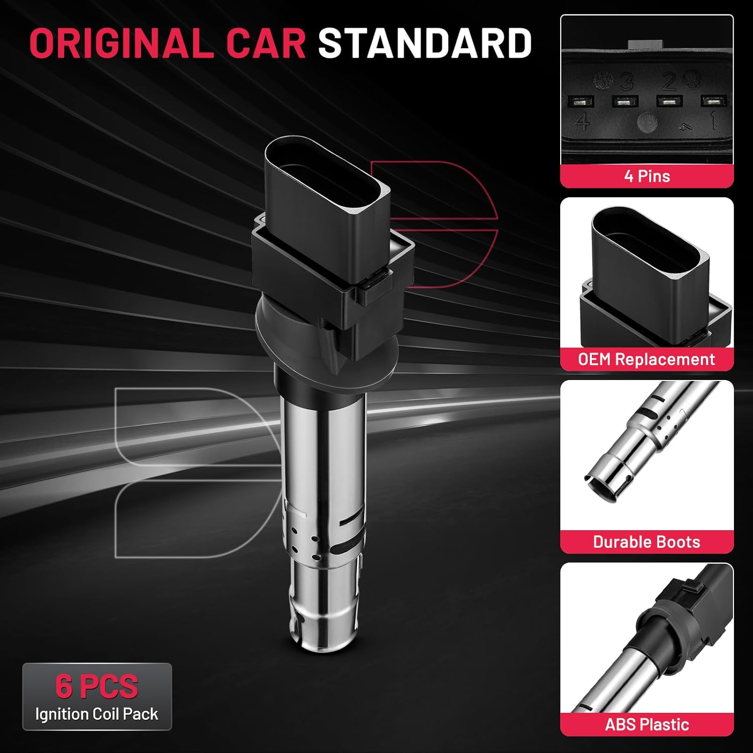 BDFHYK Ignition Coils Pack Compatible with Audi Q7 A3 TT Quattro,Compatible with VW Eos R32 Passat Touareg Porsche Cayenne V6 3.2L 3.6L Coil for UF531 DQ50130 GN10443 C-731 5C1465 1788415 Set of 6
