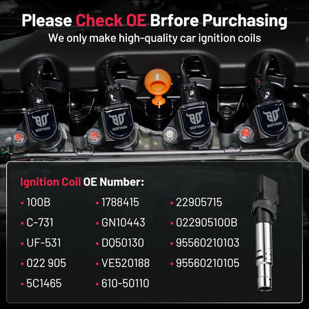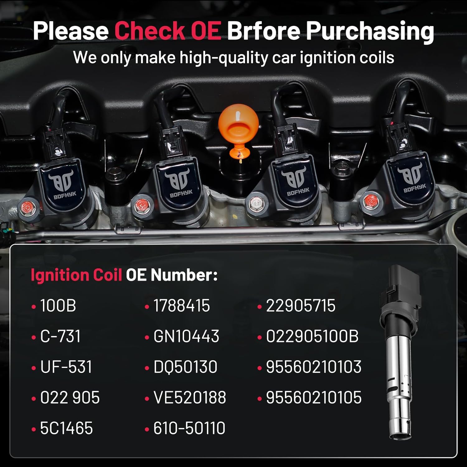 【Buy with Confidence】When your car has traveled more than 80,000km and is experiencing problems such as hard starting, excessive cranking time, lack of power, and increased fuel consumption, you may need to replace it with a new set of coil packs. Replacing our ignition coils can make your car as if it were new!You may choose it with confidence.