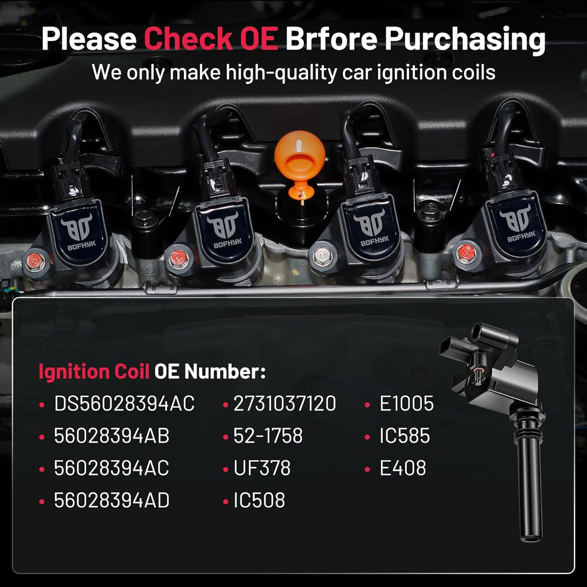 【Buy with Confidence】When your car has traveled more than 80,000km and is experiencing problems such as hard starting, excessive cranking time, lack of power, and increased fuel consumption, you may need to replace it with a new set of coil packs. Replacing our ignition coils can make your car as if it were new!You may choose it with confidence.