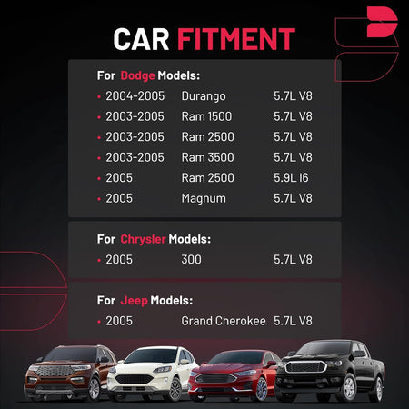 【Precautions】Please confirm compatibility based on your vehicle's year, brand, model, and the OE number of the replacement parts.Compatible with Chrysler 300 2005 ; Compatible with Dodge 2004-2005 Durango Magnum, 2003-2005 Ram 1500 2500 3500; Compatible with Jeep 2005 Grand Cherokee.etc.More information can be found in the pictures or on the details page.