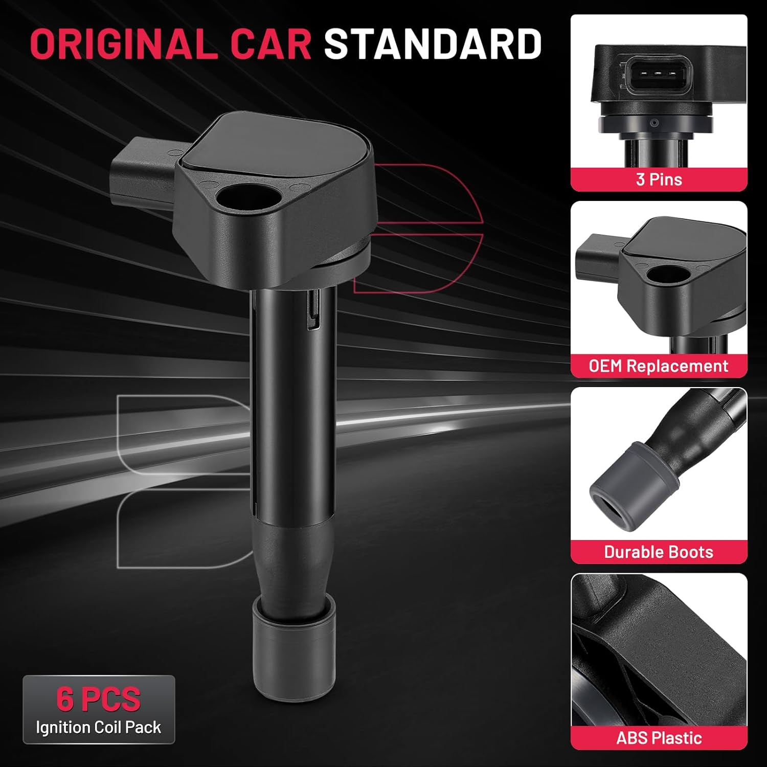 BDFHYK Ignition Coils Pack Compatible with Honda Accord Odyssey Acura RL TL CL V6 3.0L 3.2L 3.5L Coil for UF242 GN10168 C-511 C1221/C1462 90919-02247 30520P8EA01 30520P8FA01 30520RCAA02 Set of 6