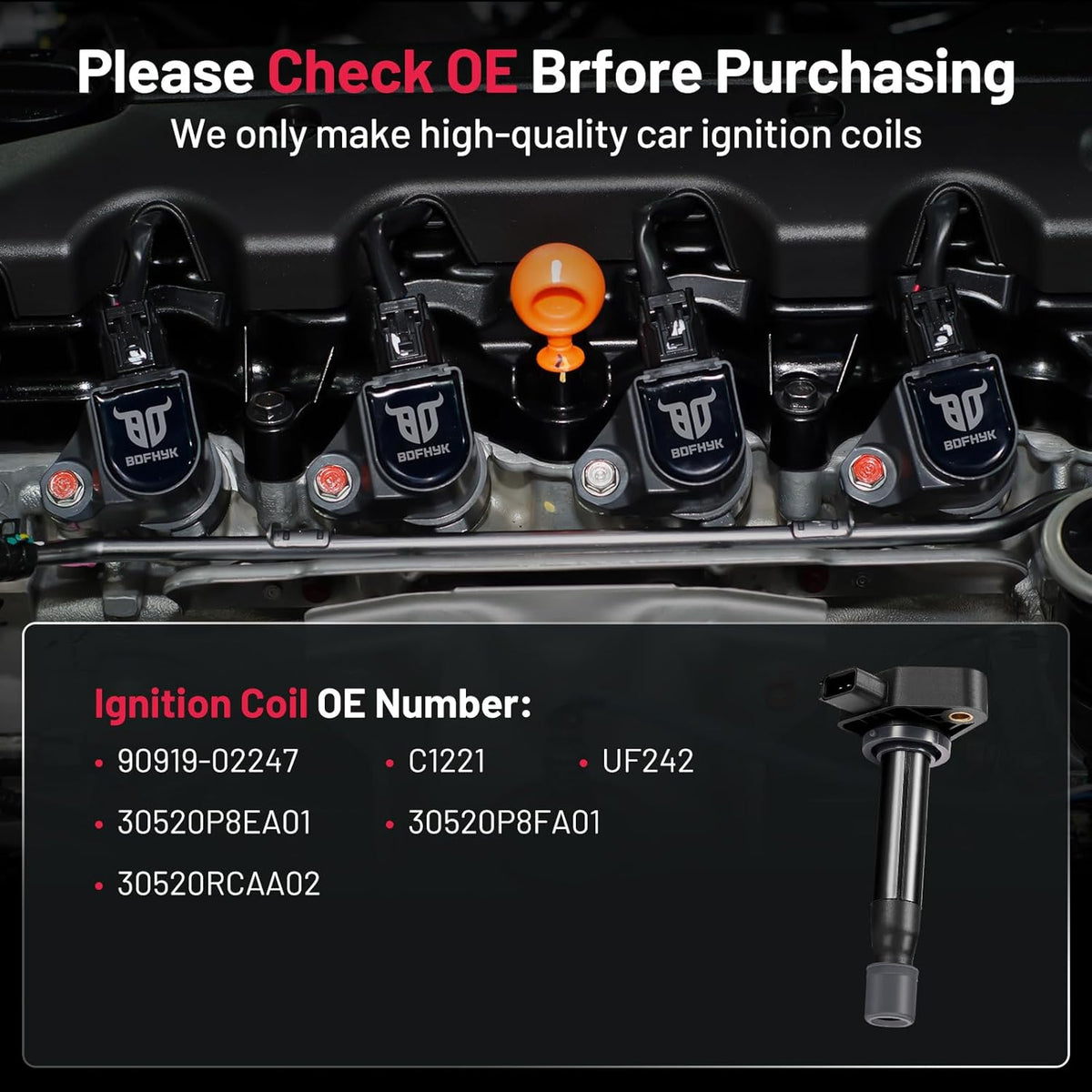【Buy with Confidence】When your car has traveled more than 80,000km and is experiencing problems such as hard starting, excessive cranking time, lack of power, and increased fuel consumption, you may need to replace it with a new set of coil packs. Replacing our ignition coils can make your car as if it were new!You may choose it with confidence.