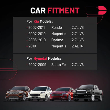 【Precautions】Please confirm compatibility based on your vehicle's year, brand, model, and the OE number of the replacement parts.Compatible with Hyundai 2007-2009 Santa Fe 2.7 V6,Compatible with Kia 2010 2011 Rondo 2.7 V6,2006 Optima 2.7 v6,Magentis 2.7 V6.etc.More information can be found in the pictures or on the details page.