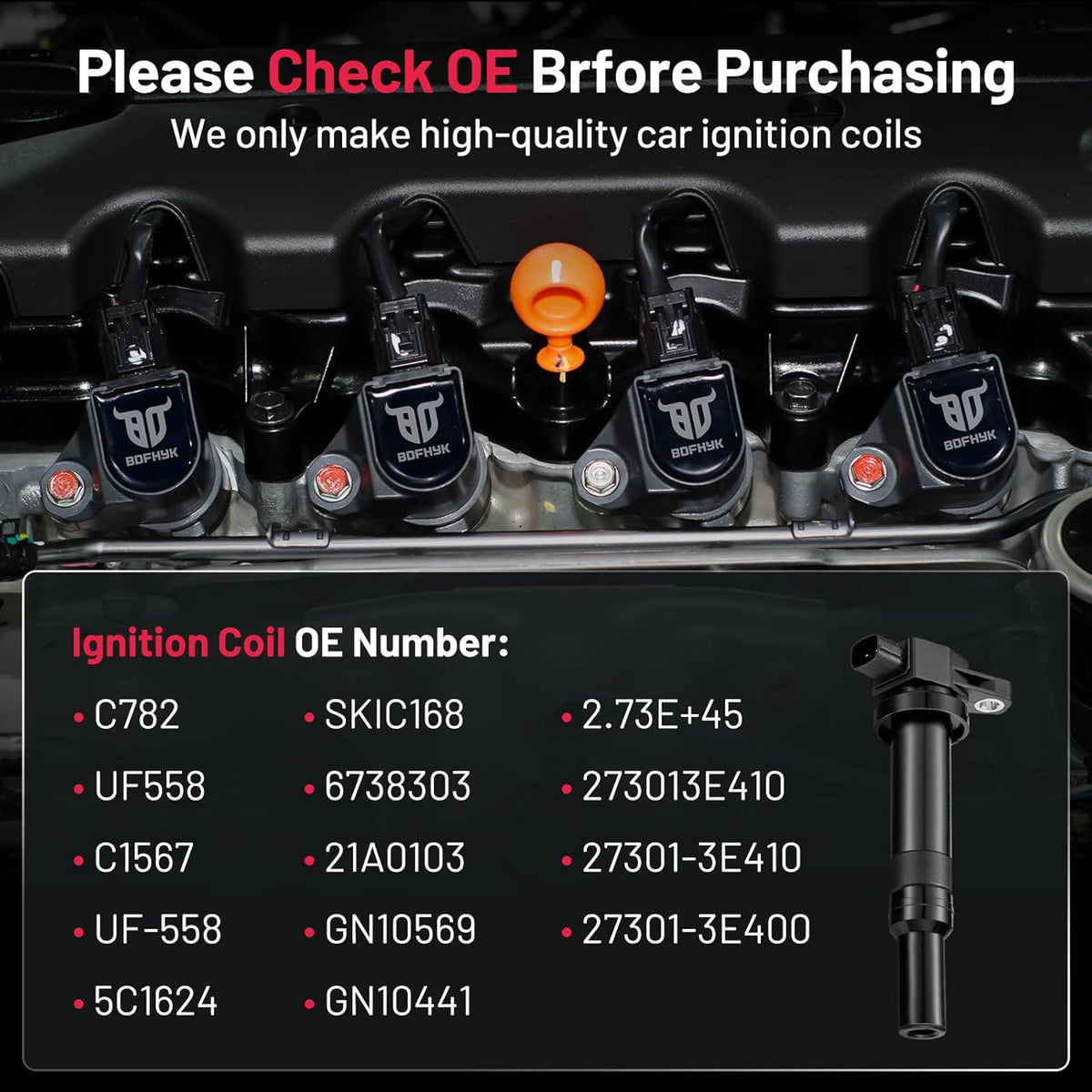 【Buy with Confidence】When your car has traveled more than 80,000km and is experiencing problems such as hard starting, excessive cranking time, lack of power, and increased fuel consumption, you may need to replace it with a new set of coil packs. Replacing our ignition coils can make your car as if it were new!You may choose it with confidence.