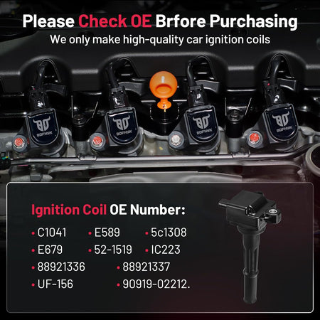 【Buy with Confidence】When your car has traveled more than 80,000km and is experiencing problems such as hard starting, excessive cranking time, lack of power, and increased fuel consumption, you may need to replace it with a new set of coil packs. Replacing our ignition coils can make your car as if it were new!You may choose it with confidence.