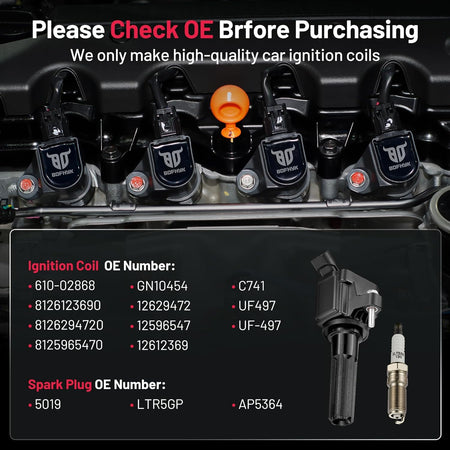 【Coils Features】Coil packs are made of Japan-imported rubber and Germany-imported varnished wire,and the exquisite craftsmanship design makes our products durable even under extreme conditions.OE No.UF-497, UF497, 12596547, 12612369, 610-02868, 8125965470, C741, 12629472, 8126123690, 8126294720, GN10454.