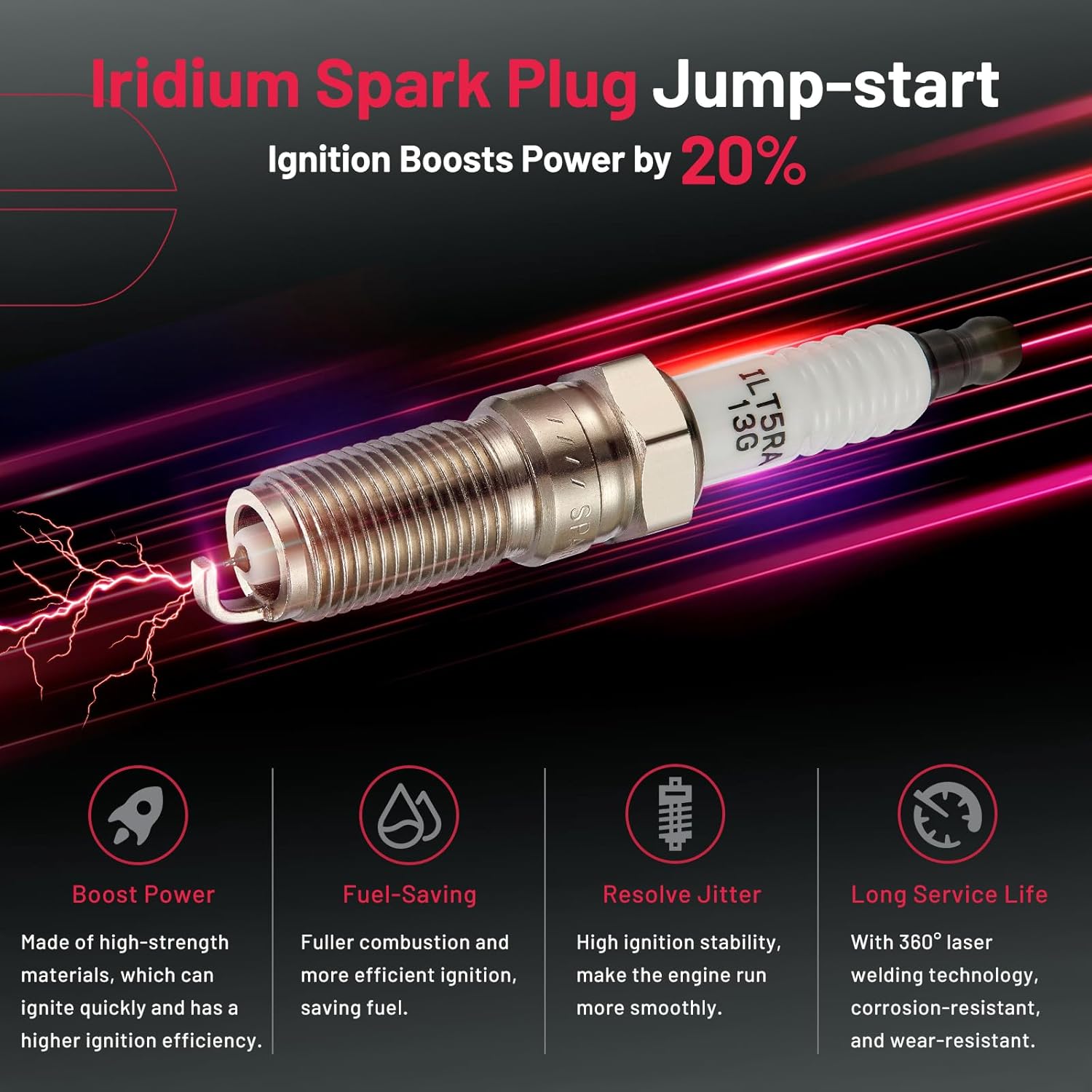 【Spark Plug Features】spark plugs are made of iridium electrodes and hydrostatic ceramics, and are hot riveted to give them superior ignition performance and a longer service life, ensuring that your car will take on a new lease of life after installation.OE No.5019, LTR5GP, AP5364.