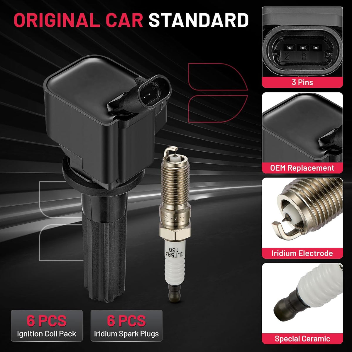 BDFHYK Ignition Coils UF497 and Iridium Spark Plug 5019 Compatible with GMC Envoy XL Chevrolet Trailblazer EXT Saab 9-7x Buick Rainier Isuzu Ascender l6 4.2L Replaces C741 GN10454 AP5364 Set of 6