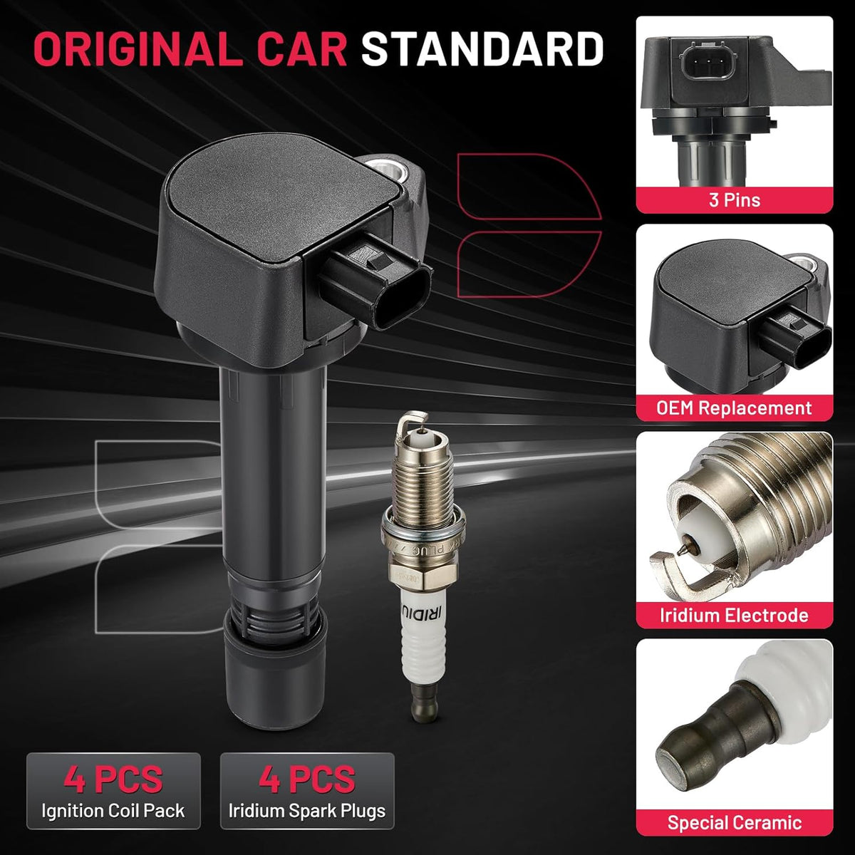 【Buy with Confidence】When your car has traveled more than 80,000km and is experiencing problems such as hard starting, excessive cranking time, lack of power, and increased fuel consumption, you may need to replace it with a new set of coil packs. Replacing our ignition coils can make your car as if it were new!You may choose it with confidence.